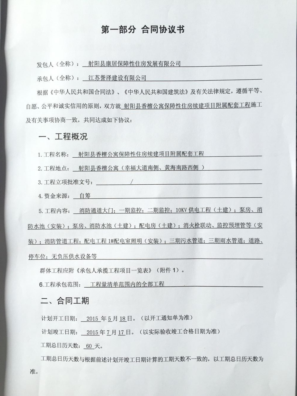 射阳县香檀公寓保障性住房续建项目附属配套工程合同协议书