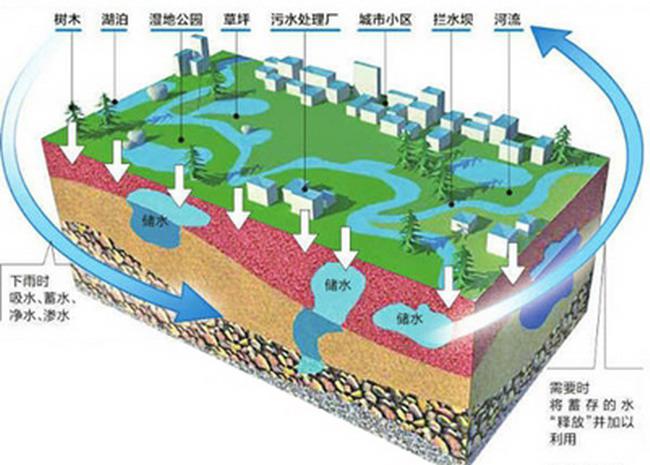 为了避免内涝的产生,减轻内涝的危害,许多城市都进行了改造。以广州为例:2014年下半年,广州市水务局首次公开的广州水务白皮书显示,广州2013年中心城区易涝点共44个,其中内涝黑点13个,积水频发点24个。2008年以来,水务部门已完成300多个水浸点改造。预计到2015年,广州城区及建制镇排涝标准将达20年一遇,24小时暴雨不成灾。 然而,2015年5月初的一场暴雨,让广大市民发现,“24小时暴雨不成灾”依然是没有实现的梦想。 之前,各地政府为了解决内涝问题大力推进管道系统的改造,投入巨大但效果甚微。 因此,遵循自然雨水循环规律的城市雨洪管理系统应运而生,在我国,这个系统被称为海绵城市。意为城市能够像海绵一样下雨时吸水、蓄水、渗水、净水,需要时将蓄存的水“释放”并加以利用。 2013年12月,习近平提出:建设自然积存,自然渗透,自然净化的海绵城市。而这三个“自然”实际上是强调利用生态的方式加强城市雨水管理能力。